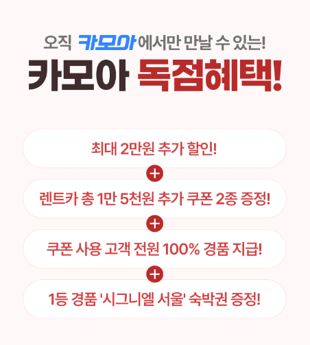 카모아 독점혜택으로는 최대 2만 원 추가 할인에 더하여