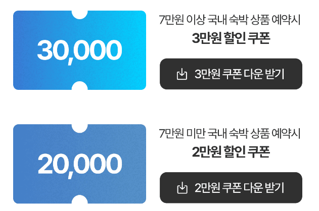(2) 프리미엄스테이 숙소도 숙박 할인권 적용 가능합니다. 다만 일부 제외되는 곳도 있으니 예약하시기 전 확인 해보시는 것을 추천드립니다. 숙박할인 쿠폰 발급받으셔서 황금연휴 여행 경비 절감해 보세요.