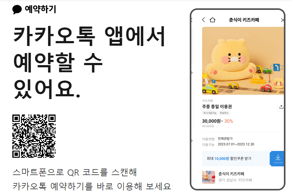 카카오톡 앱에서 예약할 수 있는데요. 아래이미지 클릭하셔서 스마트폰으로 QR 코드를 스캔해 카카오톡 예약하기를 바로 이용해 보세요. 다양한 추가혜택도 많이 있네요.