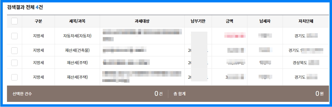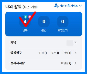 ※ 내가 내야 하는 납부 대상 목록이 나오게 됩니다. 여기서 직접 납부할 수도 있어요.