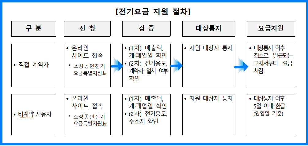 ※ 전기요금 지원 절차에 대한 세부적인 내용은 아래 이미지 참고하세요.